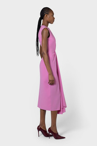 Crafted in a deep shade of Orchid pink, The ALMAS dress is a mid length dress featuring flattering rouching pinched to the waist, with waterfall folds to the aline skirt. Model Wears: UK Size 8 Details & Care Main Colour: NEW ORCHID Product Fabric: SINGLE CREPE Product Composition: 60% ACETATE 40% POLYESTER LINING: 73% ACETATE 27% SILK Product Care: Specialist Dry Clean