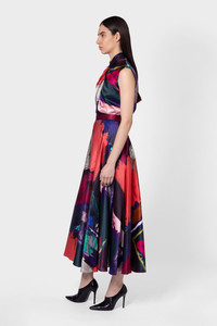 The AMEERA skirt features a bold abstract print in red, green and blue, offering a bold, artistic statement. This high-waisted circle skirt enhances the fluid movement of the fabric, creating a dynamic, elegant and flattering look. DETAILS & CARE Main Colour: Iris Pictorial print Product Fabric: Silk Satin Product Composition: 100% Silk Product Care: Specialist Dry Clean SIZING & FIT Model Wears: Size 8 Sizing System: UK Sizing