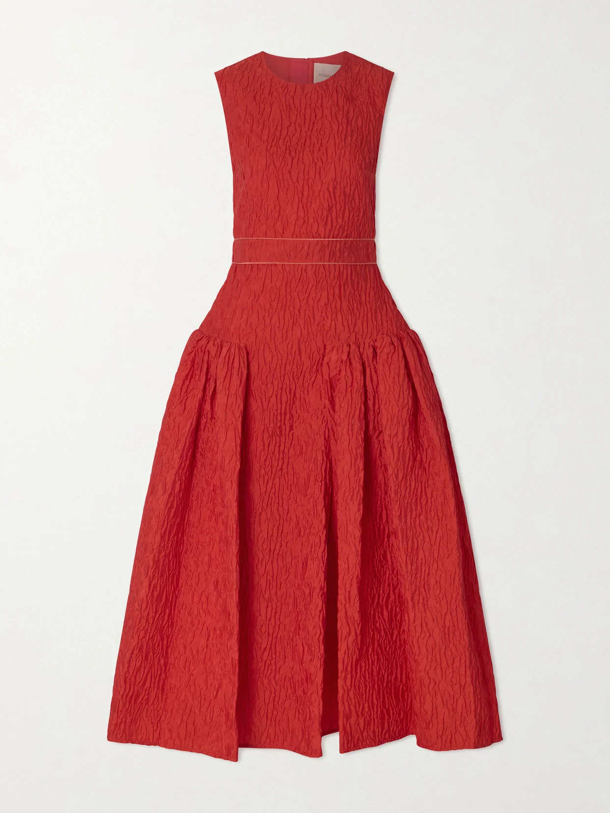 Bold colors and sculptural shapes define Roksanda's collections. Made from red cloque, this 'Aya' dress fits close through the bodice and has a gathered, drop waist that adds dramatic volume through the skirt. Lift the midi hem with heels.