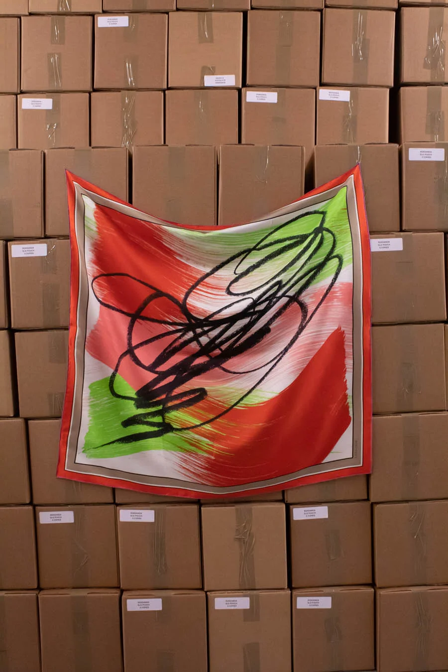 Referencing the deeply artistic heritage of the brand, impactful scribbling gestures created at our London studio, are printed onto beautiful silk scarves in energetic painterly brushstrokes. Details & Care Colour: CRIMSON Product Composition: 100% SILK Product Care: Dry Clean Only Sizing & Fit Product Sizing: 85cm x 90cm