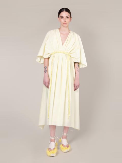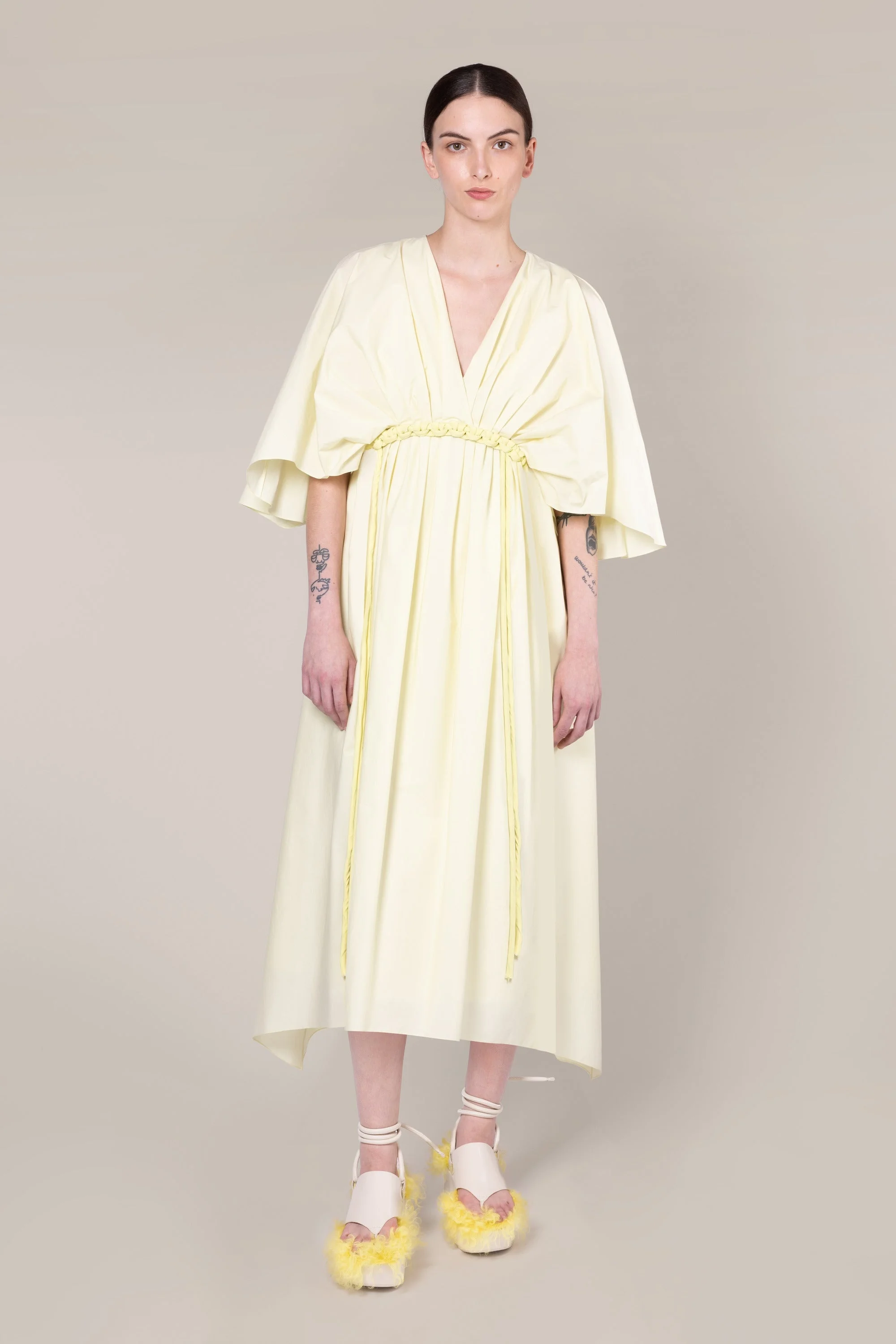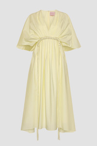 The DARIA dress features 3/4 sleeves for standout appeal. The structured dress highlights a V neckline and includes a braided macrame belt at the waist. DETAILS & CARE Main Colour: Pina Product Composition: Cotton Product Care: Specialist Dry Clean SIZING & FIT Model Wears: Size 8 Sizing System: UK Sizing