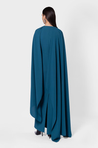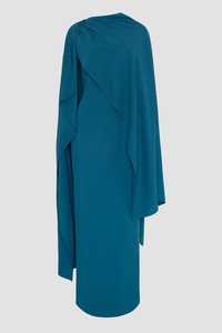 The DEENA dress is a floor length crepe gown, its modest high neckline and sleek fit is contrasted with dramatic draped sleeves and cape. DETAILS & CARE Main Colour: Persian Green Product Fabric: Crepe Product Composition: 60% Acetate 40% Polyester, Lining: 73% Acetate 27% Silk Product Care: Specialist Dry Clean SIZING & FIT Model Wears: Size 8 Sizing System: UK Sizing