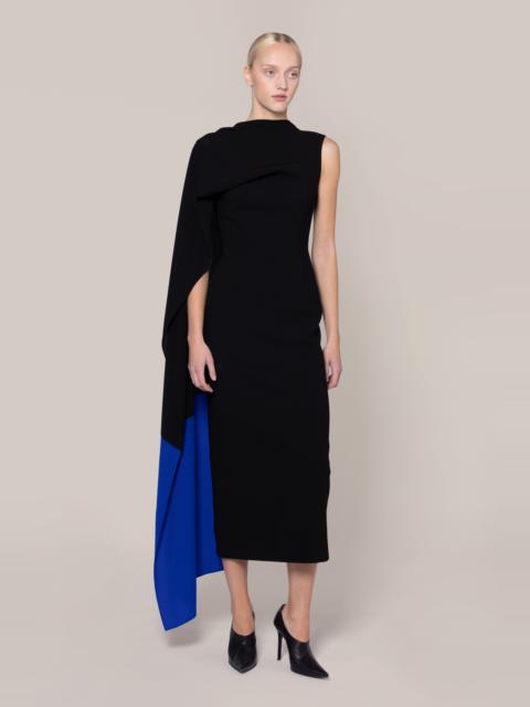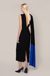 Cut from ivory bonded crepe, the EDITH dress sings grace featuring its flattering fitted body and embracing shoulder cape. DETAILS & CARE Main Colour: Black/Marine Product Composition: Crepe Product Care: Specialist Dry Clean SIZING & FIT Model Wears: Size 8 Sizing System: UK Sizing