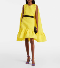 Roksanda Ilinčić’s background in architecture informs her brand’s distinctive approach to fashion design. Crafted from textured cloque fabric in a bold yellow, the Elia dress from Roksanda features a ruffled hem, a cape, and a mini length. Product Details - Material: 76% polyester, 24% polyamide - Care instructions: specialist clean - Made in China - Designer color name: Zinnia - Item color: yellow, black - Lining: 73% acetate, 27% silk - Closure: zipped back - Pockets: side slit pockets - Item number: P01061117 Size & Fit - True to size - Loose fit, comes with belt - Non-stretchy fabric - The model seen in the picture is 178cm-5'10" and wearing a size UK 8
