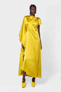 The HIBA dress in bold chartreuse is an elegantly draped mid length silk dress with a-symmetric styling. A cap sleeve to one side is complimented by a contrasting draped cape sleeve to the other. DETAILS & CARE Main Colour: Zinnia Product Fabric: Silk Satin Product Composition : 100% Silk, Lining: 73% Acetate 27% Silk Product Care: Specialist Dry Clean SIZING & FIT Model Wears: Size 8 Sizing System: UK Sizing