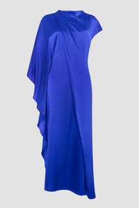 The HIBA dress in popping cobalt is an elegantly draped mid length silk dress with a-symmetric styling. A cap sleeve to one side is complimented by a contrasting draped cape sleeve to the other. Model Wears: UK Size 8 Details & Care Main Colour: PERSIAN BLUE Product Fabric: SILK SATIN Product Composition: 100% SILK / 73% ACETATE 27% SILK Product Care: Specialist Dry Clean