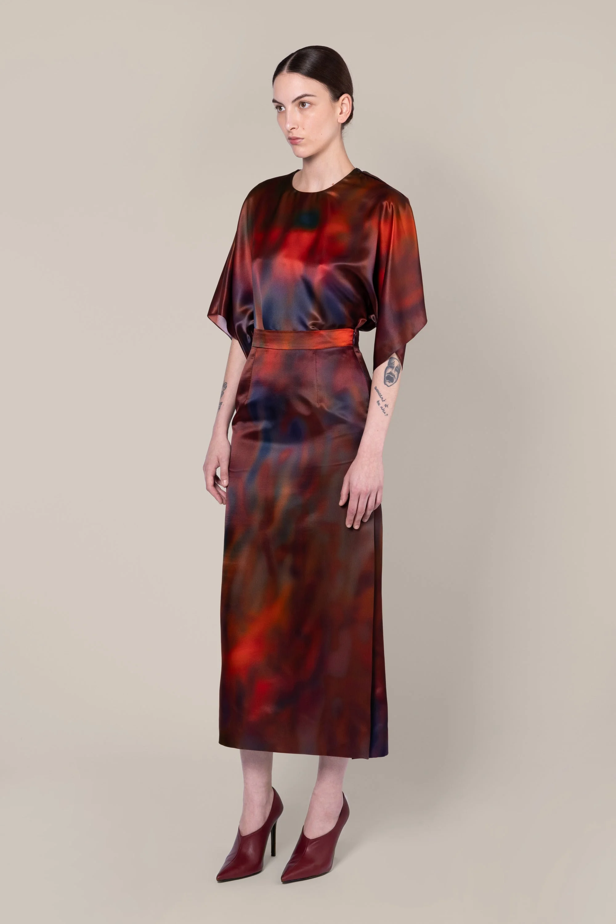 The IRMA skirt showcases a mesmerizing colour palette, creating a bold yet refined visual effect. The high waist, accentuated by a slim beige belt, offers a clean and structured silhouette, while the straight cut adds a touch of modern sophistication to its fluid design. DETAILS & CARE Main Colour: Hickory Product Composition: Silk Product Care: Specialist Dry Clean SIZING & FIT Model Wears: Size 8 Sizing System: UK Sizing