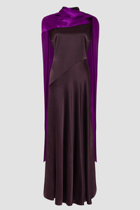 The KLANIRA dress is an elegant sleeveless gown made from Hickory and Grape silk satin. This fitted A-line gown features colour blocking to the cape, adding contrast. DETAILS & CARE Main Colour: Purple Product Composition: Silk Product Care: Specialist Dry Clean SIZING & FIT Model Wears: Size 8 Sizing System: UK Sizing