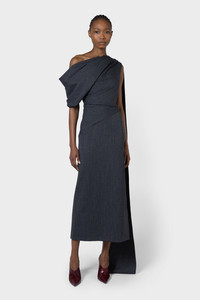 The MAITE dress is crafted in herringbone wool, showcasing a beautifully draped bodice that flows into a sleek, form-fitting silhouette. The asymmetrical neckline adds a modern, refined touch. Model Wears: UK Size 8 Details & Care Main Colour: CHARCOAL Product Fabric: HERRINGBONE WOOL Product Composition: 54% POLYESTER 44% WOOL 2% ELASTANE, 73% ACETATE 27% SILK Product Care: Specialist Dry Clean