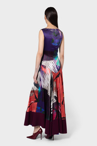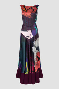 The MUNIR dress features a dropped waist with seam detailing. Crafted in abstract printed silk in dark hues of red, plum and green. This a-line mid length dress is finished with a bonded panel to the hem to create weighted movement. Model Wears: UK Size 8 Details & Care Main Colour: Iris Leda Pictorial Print Product Fabric: Silk Satin Product Composition: 100% Silk, Lining: 73% Acetate 27% Silk Product Care: Specialist Dry Clean