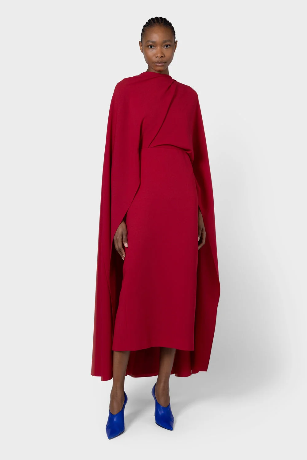 The NEOLITSEA dress is crafted in a deep shade of Amaranthus red crepe. This fitted mid length dress features asymmetric draping to the bodice, finishing with flowing cape to the back and sleeves. Model Wears: UK Size 8 Details & Care Main Colour: AMARANTHUS Product Fabric: SINGLE CREPE Product Composition: 60% ACETATE 40% POLYESTER LINING: 73% ACETATE 27% SILK Product Care: Specialist Dry Clean