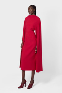 Form fitting and flattering, the NOUR dress in crepe features a high neckline with long draped sleeves. Its deep V neckline to the back offers sensual styling to the modest mid length. DETAILS & CARE Main Colour: Amaranthus Product Fabric: Crepe Product Composition: 60% Acetate 40% Polyester, Lining : 73% Acetate 27% Silk Product Care: Specialist Dry Clean SIZING & FIT Model Wears: Size 8 Sizing System: UK Sizing