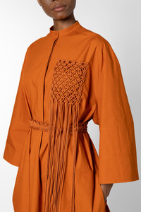 The POSKA dress, crafted from cotton on a deep cinnamon shade. This oversized skirt dress features intricate macrame detailing to the pocket. Model Wears: UK Size 8 Details & Care Main Colour: CINNAMON Product Fabric: COTTON MACRAME Product Composition: 100% COTTON Product Care: Specialist Dry Clean