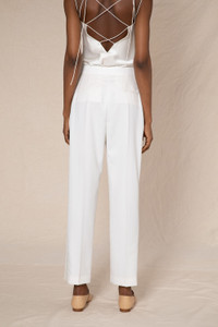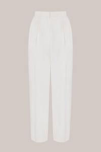 Simply elegant, cut from ivory wool twill the RAGOSTA trousers are an ideal fit for a bridal suit. Featuring silk lining detail and cuffed hems, pair with its matching jacket for a modern bridal look. Model Wears: UK Size 8 Details & Care Colour: IVORY Product Composition: SELF 1: 100% WOOL, SELF 2: 100% SILK, LINING: 53% CUPRO 47% COTTON, TRIM: 65% COTTON 35% VISCOSE Product Care: Dry clean only