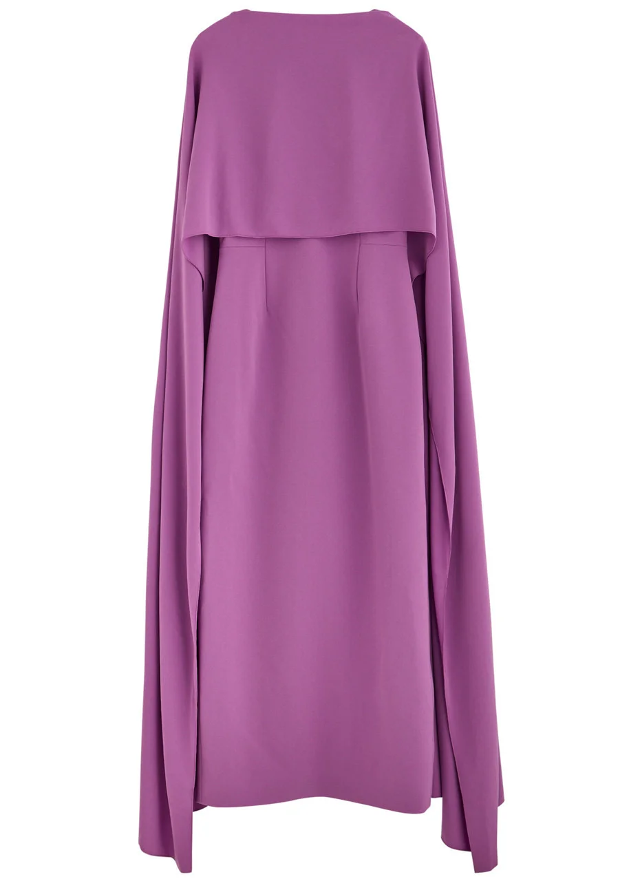 Info & Care Roksanda crepe gown High-neck, draped cape-effect;overlay, darted bodice, canvas tie fastening at back neck, back vent, fully lined Concealed zip fastening at back 68% acetate, 32% polyester; lining: 73% acetate, 27% silk Dry clean Size & Fit Length shoulder to hem: 52 inches/ 132cm Midweight Slim fit Model is 5'10"/ 178cm and wears a size UK8