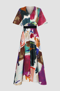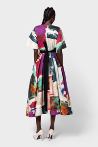 A flattering fit and flare shape, the SANA dress features a V neckline and structured sleeves. This circular skirted dress showcases an artful abstract print in cotton. DETAILS & CARE Main Colour: Chalk Pictorial print Product Fabric: Printed cotton Product Composition: 100% Cotton, Lining: 100% Cotton Product Care: Specialist Dry Clean SIZING & FIT Model Wears: Size 8 Sizing System: UK Sizing
