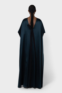 The SEIF dress is crafted from rich teal silk. This floor length silk gown is complimented by floaty sleeves and draped cape to the back featuring contrasting cobalt blue lining. Model Wears: UK Size 8 Details & Care Main Colour: DARK TEAL / COBALT Product Fabric: Silk Satin Product Composition: SELF 1: 100% SE SELF 2: 100% SE LINING 73% ACETATE 27% SILK Product Care: Specialist Dry Clean