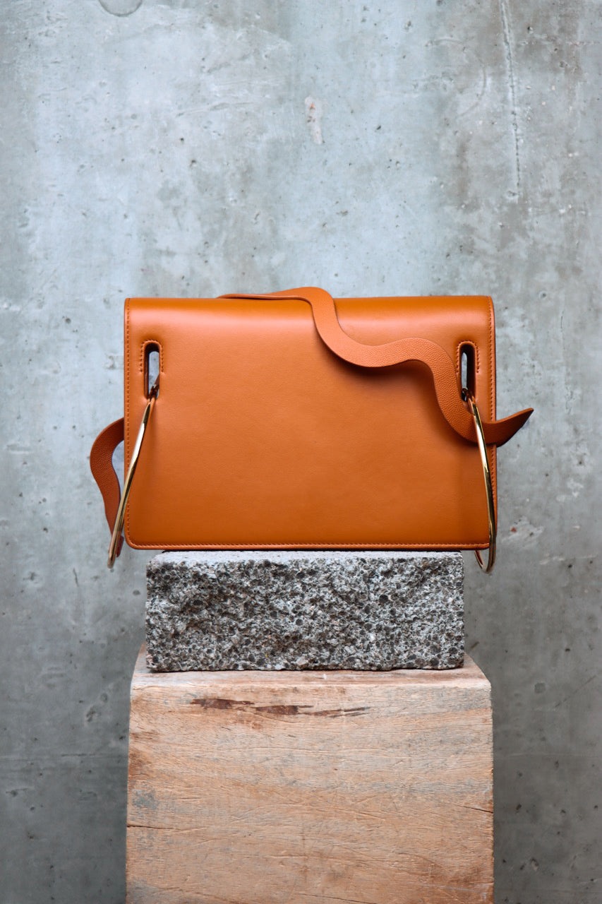 Handcrafted in Italy, the leather Dora bag is cut to clean, sculptural silhouette. Lined with suede and punctuated with large gold-tone metal ring hardware, the signature waved grained-leather strap completes this contemporary design. DETAILS & CARE Main Colour: Tobacco Product Composition: Shell: 100% Calf Lining: 65% Polyamide 35% Polyurethane Product Care: Special Cleaning Country of Origin: Italy SIZING & FIT Sizing System: W24cm-L20cm-D5cm