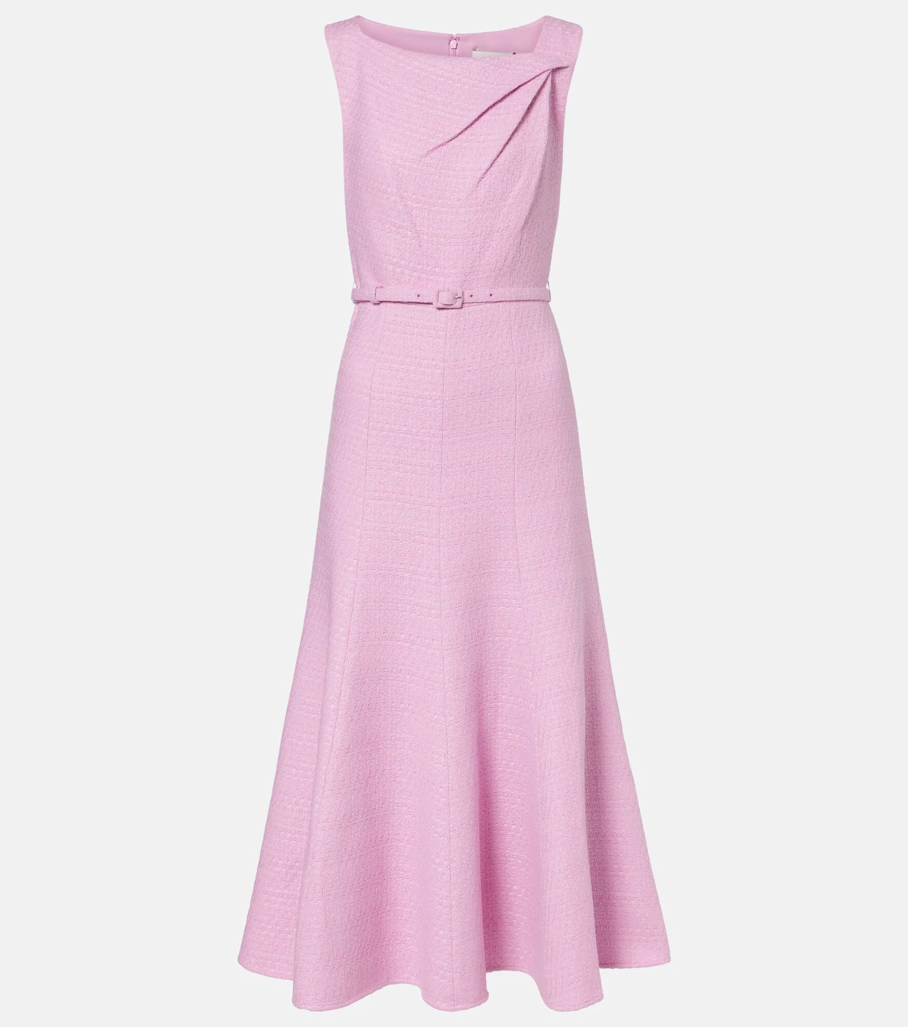 Roland Mouret has made a name for itself through a black tie-ready aesthetic and an expert use of draping. Made from pink-hued boucle, this midi dress is defined by an asymmetric neckline and belted waistline. Product Details - Material: 56% polyester, 44% acrylic - Care instructions: dry clean - Made in China - Designer color name: Pink - Item color: pink - Lining: 100% polyester - Detachable belt - Closure: zipped back - Item number: P01080485 Size & Fit - True to size - Cinched waist - Non-stretchy fabric - The model seen in the picture is 178cm-5'10" and wearing a size UK 6