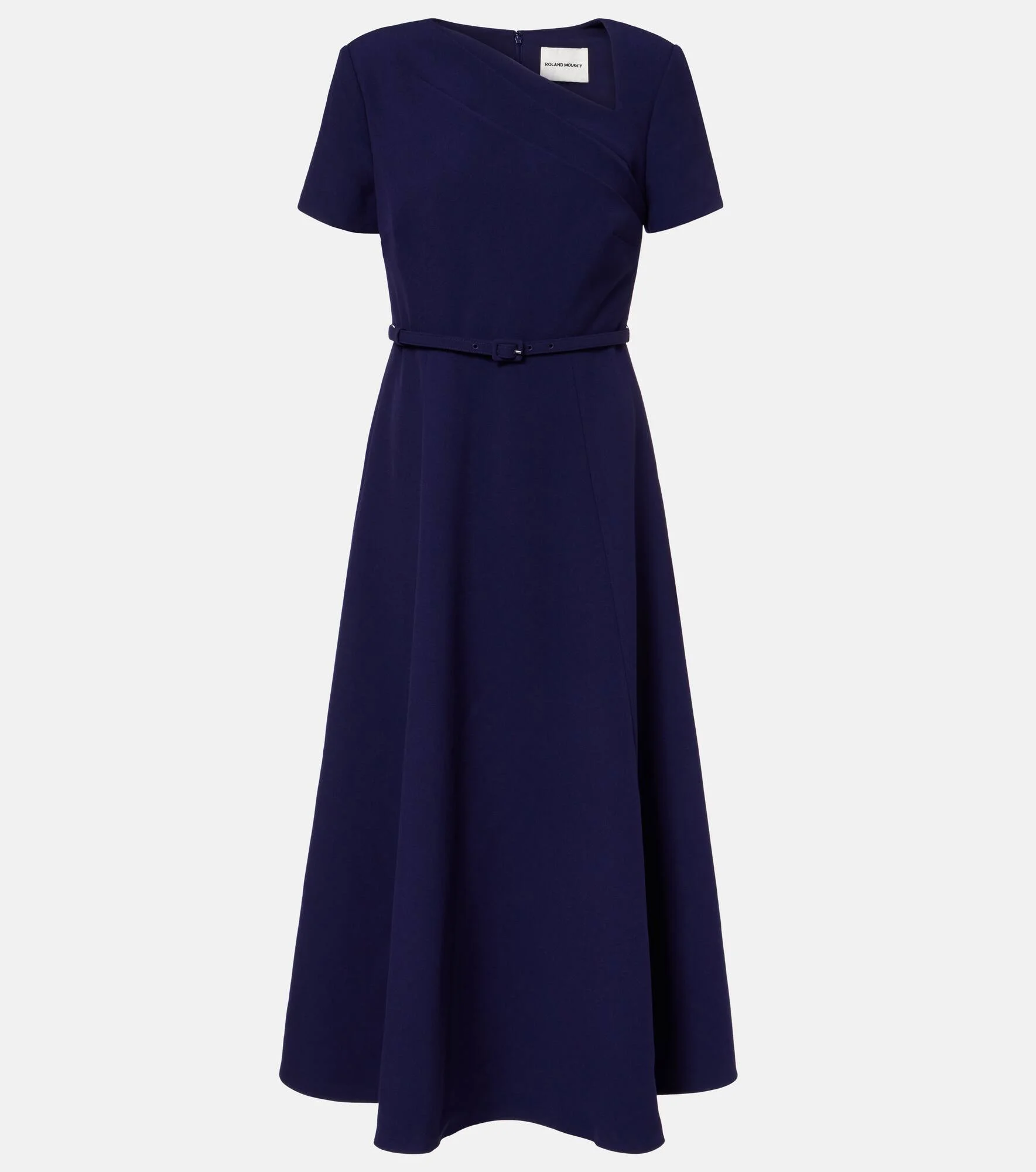 Roland Mouret has made a name for itself through a black tie-ready aesthetic and an expert use of draping. Made from navy-hued crepe, this midi dress is characterized by its asymmetrical neckline and belted waistline. Product Details - Material: 85% polyester, 10% viscose, 5% elastane - Care instructions: dry clean - Made in China - Designer color name: Navy - Item color: blue - Insert: 85% polyester, 10% viscose, 5% elastane - Detachable belt - Closure: zipped back - Item number: P01080480 Size & Fit - True to size - Shoulder pad inserts - Cinched waist - Non-stretchy fabric - The model seen in the picture is 178cm-5'10" and wearing a size UK 6