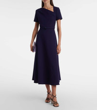 Asymmetric belted crêpe midi dress