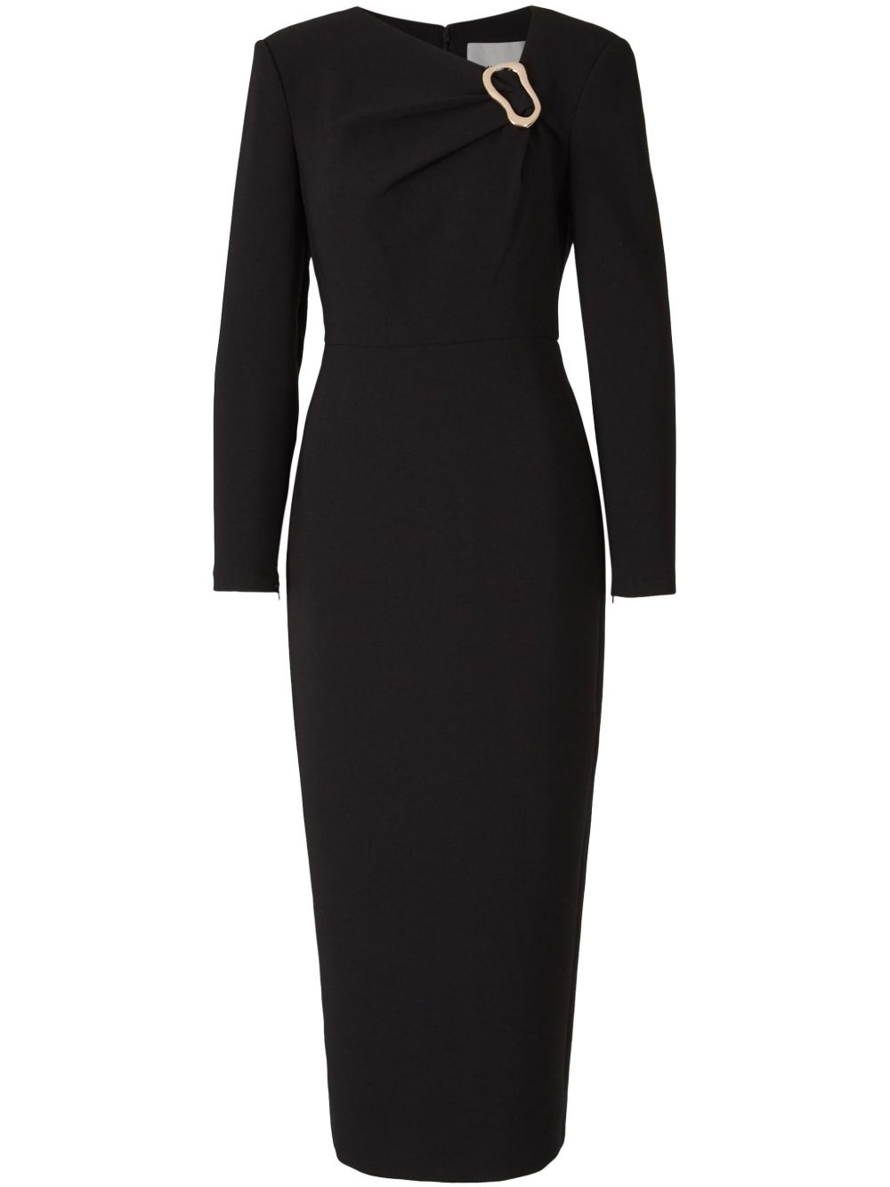 crepe dress Highlights - Black - Concealed rear zip fastening - Asymmetric neck - Long sleeves - Full lining Imported Composition Polyester 100%