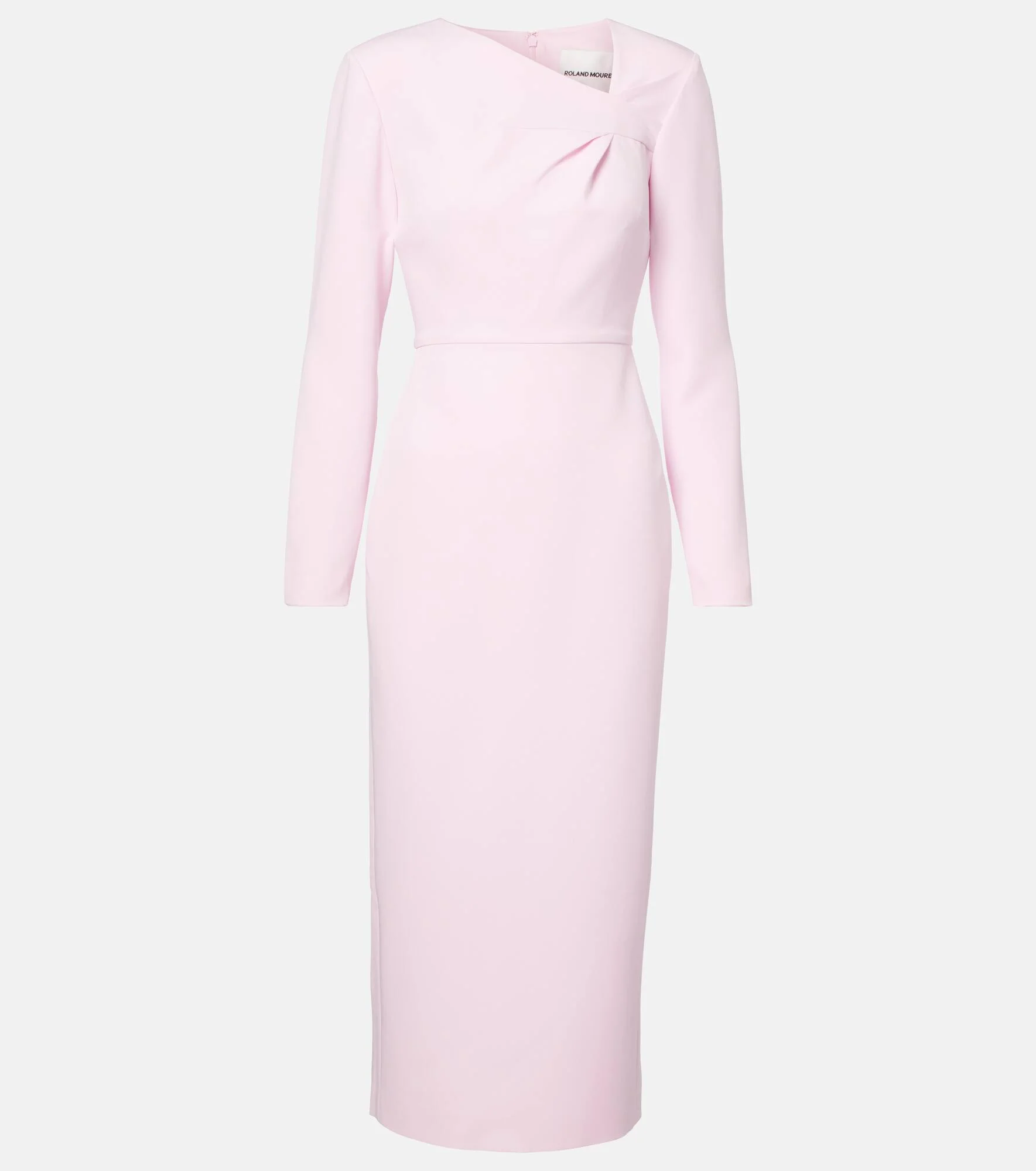 Exude glamour in this midi dress from Roland Mouret. This column style is crafted from pink crepe and boasts an asymmetric neckline with a draped-twisted detail and removable shoulder pads. Product Details - Material: 95% polyester, 5% elastane - Care instructions: dry clean - Made in China - Color: pink - Designer color name: Pink - Closure: concealed zipped back - Lining: 100% polyester - Short vent - Item number: P01166070 Size & Fit - True to size - Shoulder pad inserts - Cinched waist - Non-stretchy fabric - The model seen in the picture is 178cm-5'10" and wearing a size UK 6