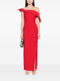 off-shoulder crepe gown Highlights - Rose red - Wool-silk blend - Crepe texture - Draped detailing - Off-shoulder - Rear zip fastening - Fitted waistline - Pencil silhouette - Side slit - Straight hem - Ankle-length Imported Composition Outer: Polyester 100%, Wool 70%, Silk 30% Lining: Polyester 91%, Elastane 9% SIZE & FIT Model measurements Height 5 ft 11 in(1.8 m) Bust/Chest 33.07 in(84 cm) Hips 37.4 in(95 cm) Waist 25.19 in(64 cm) FittingInformation Designed for a slim fit that sits just away from the body offering a close yet comfortable fit The internal bodice offers support and shape Made from a midweight stretch fabric, this piece offers elasticity and flexibility when worn This piece fits true to size – take your usual size Measurement HIPS 42.51 in(108 cm) LENGTH 57.87 in(147 cm) WAIST 33.07 in(84 cm) Washing instructions Dry Clean Only