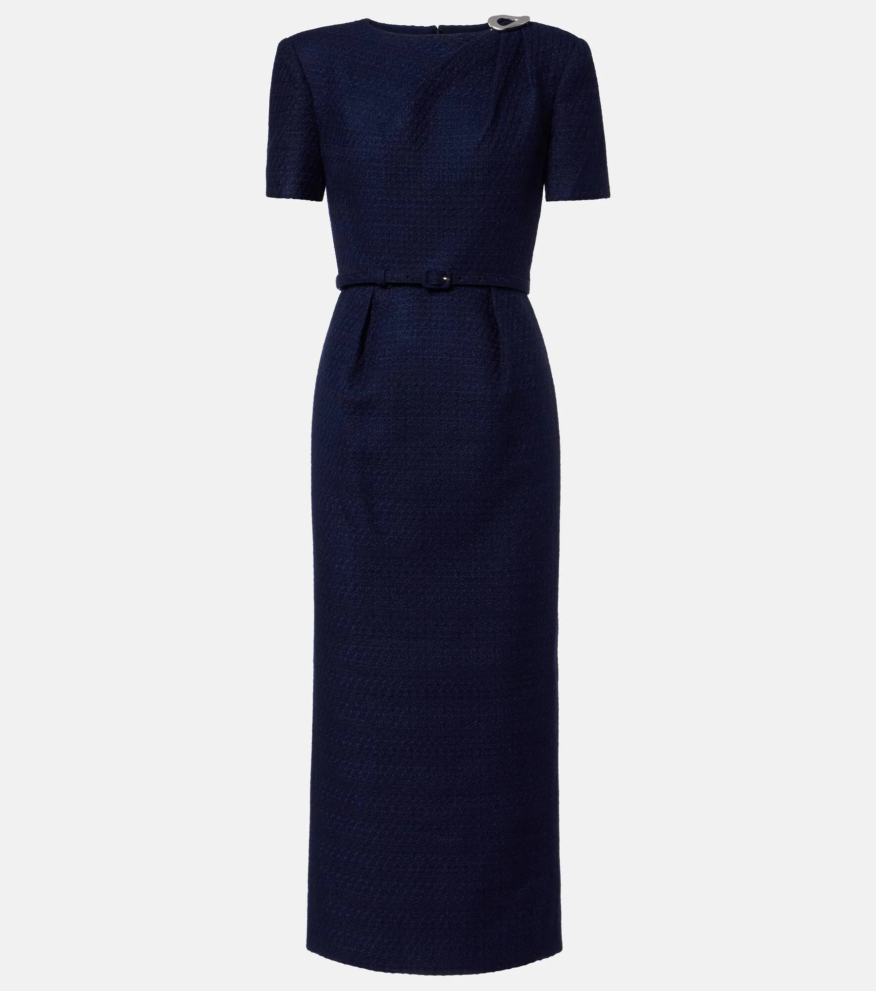 Belted bouclé midi dress