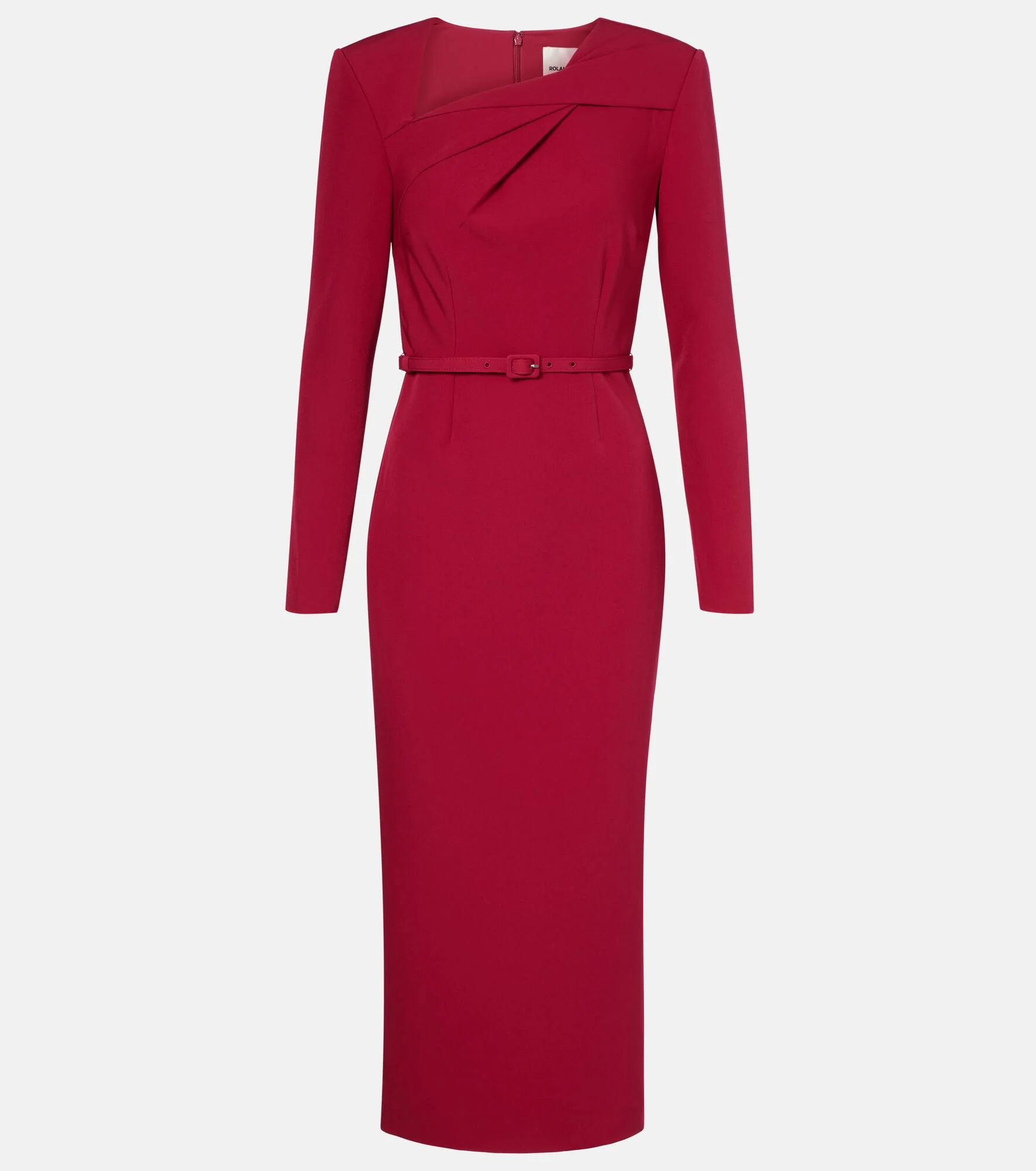 Roland Mouret quickly made a name for itself through a black tie-ready aesthetic and an expert use of draping. This midi dress is crafted from crepe and is finished with a belted waist. Product Details - Material: 91% polyester, 9% elastane - Care instructions: dry clean - Made in China - Designer color name: Pink - Item color: pink - Lining: 100% polyester - Closure: zipped back - Detachable belt - Short vent - Item number: P01080337 Size & Fit - True to size - Shoulder pad inserts - Close fit at the hips - Cinched waist - Non-stretchy fabric - slit length 40cm-15.5" - The model seen in the picture is 178cm-5'10" and wearing a size UK 6