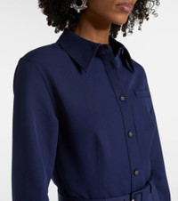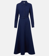 Roland Mouret has made a name for itself through a black tie-ready aesthetic and an expert use of draping. Made from navy-hued crepe, this shirt dress is complete with a tonal belt, pointed collar, and gently flared maxi skirt. Product Details - Material: 91% polyester, 9% elastane - Care instructions: dry clean - Made in China - Designer color name: Navy - Item color: blue - Material II: 91% polyester, 9% elastane - Detachable belt - Closure: partially buttoned front - Item number: P01060447 Size & Fit - Fits large to size - we recommend trying one size smaller - Cinched waist - Non-stretchy fabric - The model seen in the picture is 178cm-5'10" and wearing a size UK 6