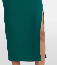 Roland Mouret has made a name for itself through a black tie-ready aesthetic and an expert use of draping. Made from wool and silk, this midi dress is a belted piece with removable shoulder pads. Product Details - Material: 68% wool, 32% silk - Care instructions: dry clean - Made in China - Designer color name: Green - Item color: green - Lining: 100% polyester - Cuff: zipped - Attached belt - Side slits - Boning - Closure: concealed zipper, zipped back, hook-fastening back - Item number: P01080502 Size & Fit - Fits small to size - we recommend trying one size larger - Shoulder pad inserts - Fitted - Non-stretchy fabric - The model seen in the picture is 178cm-5'10" and wearing a size UK 8