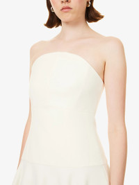 PRODUCT DETAILS - Roland Mouret crepe midi dress - 84% polyester, 10% viscose, 6% elastane - Concealed hook-and-eye and zip fastening at back - Curved strapless neckline, flared skirt, boned corset lining - Dry clean only - True to size - Size UK 8: length 50in / 127cm - Model is 5ft 10in/1.78m and wears a size UK 8 - Midweight, slight stretch Ref: R04331693