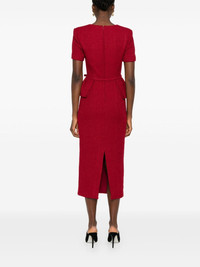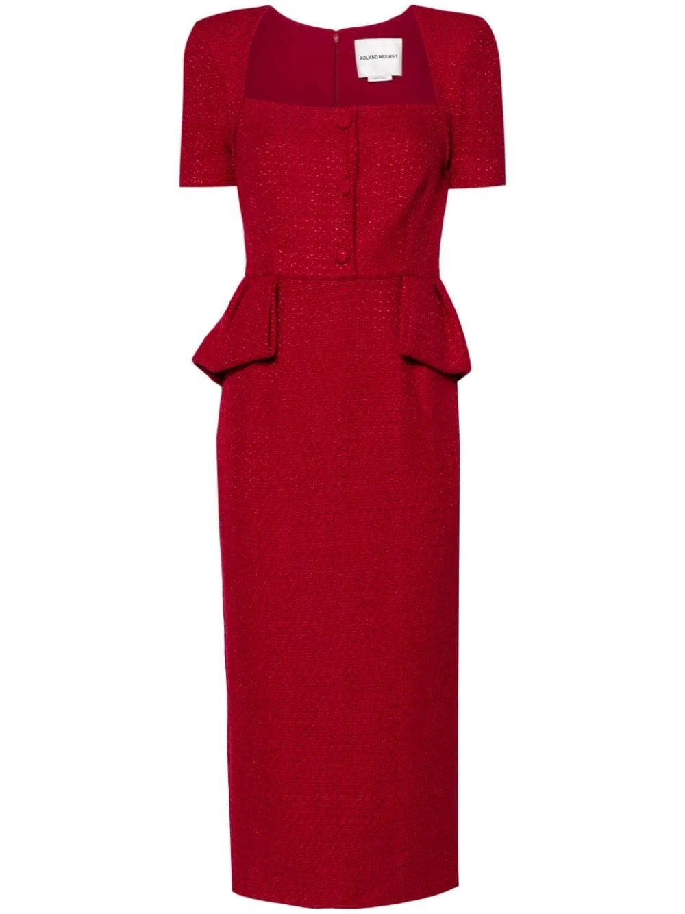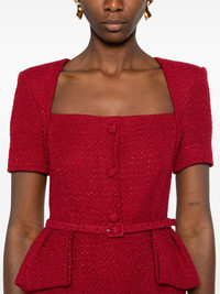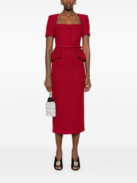 boucle midi dress Highlights - Red - Boucle construction - Rear zip fastening - Square neck - Decorative button detailing - Short sleeves - Peplum waist - Dart detailing - Draped detailing - Detachable waist belt - Central rear vent - Full lining - Mid-length Imported Composition Outer: Polyester 80%, Cotton 18%, Viscose 2% Lining: Polyester 100% SIZE & FIT Model measurements Height 5 ft 10 in(1.78 m) Bust/Chest 31.49 in(80 cm) Hips 37 in(94 cm) Waist 23.62 in(60 cm) FittingInformation Designed for a slim fit that sits just away from the body offering a close yet comfortable fit The vented hem offers movement at the rear Made from a midweight non-stretch fabric