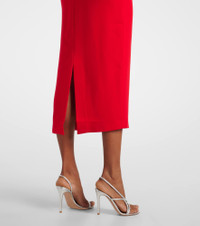 Product Details - Material: 60% acetate, 40% polyester - Care instructions: dry clean - Made in China - Designer color name: Red - Lining: 100% polyester - Shoulder pads - Closure: zip and hook fastening - Item number: P00998717 Size & Fit - True to size - Shoulder pad inserts - Cinched waist - Non-stretchy fabric - slit length 30cm-12" - The model seen in the picture is 178cm-5'10" and wearing a size UK 8