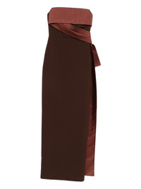 strapless tie detail maxi dress Highlights - Brown - Strapless - Tie detail - Side slit - Below-the-knee length Imported Composition Outer: Polyester 74%, Viscose 19%, Elastane 7% Lining: Polyester 100% SIZE & FIT Model measurements Height 5 ft 10 in(1.78 m) Bust/Chest 33.46 in(85 cm) Hips 36.22 in(92 cm) Waist 23.22 in(59 cm) Washing instructions Dry Clean Only