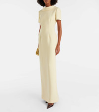 This gown from Roland Mouret is cut from mid-weight crepe in a vibrant tone. The design showcases a flattering column silhouette, complemented by an extended collar and back vent for ease of movement. Product Details - Material: 84% polyester, 11% viscose, 5% elastane - Care instructions: dry clean - Made in China - Designer color name: Yellow - Item color: yellow - Lining: 95% viscose, 5% elastane - Closure: concealed zipped back - Long vent - Detachable shoulder pads - Item number: P01125118 Size & Fit - True to size - Shoulder pad inserts - Fitted - Non-stretchy fabric - slit length 69cm-27" - The model seen in the picture is 178cm-5'10" and wearing a size UK 6