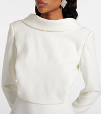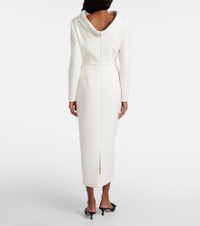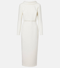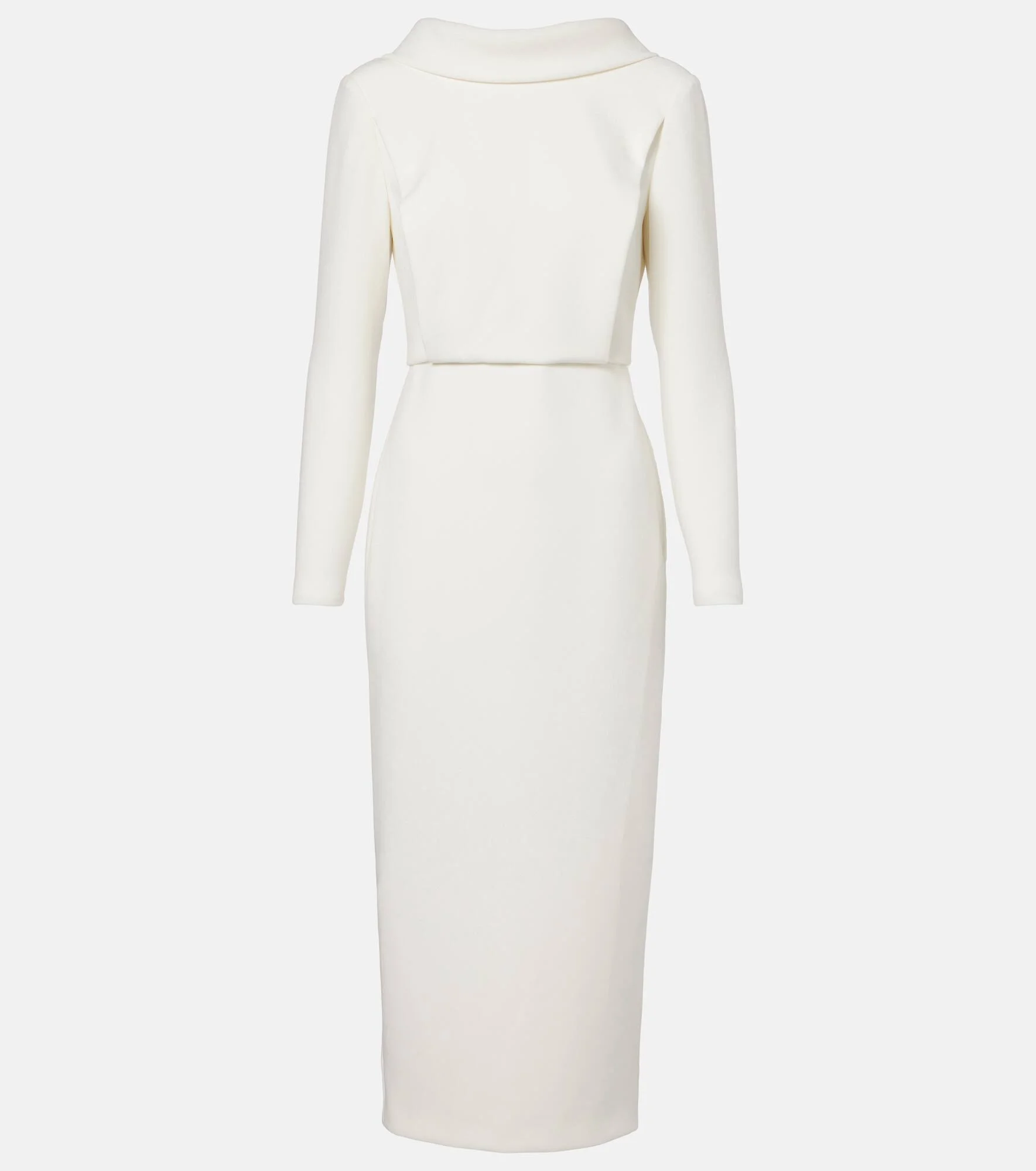 This midi dress by Roland Mouret is crafted from crepe, creating a sophisticated, minimalist staple perfect for your next unforgettable occasion. The design features long sleeves, a folded collar, a short vent, and a concealed zip closure. Product Details - Material: 86% polyester, 10% viscose, 4% elastane - Care instructions: dry clean - Made in China - Designer color name: Cream - Item color: white - Closure: zipped back - Long vent - Item number: P01104676 Size & Fit - True to size - Shoulder pad inserts - Cinched waist - Non-stretchy fabric - slit length 30cm-12" - The model seen in the picture is 178cm-5'10" and wearing a size UK 6