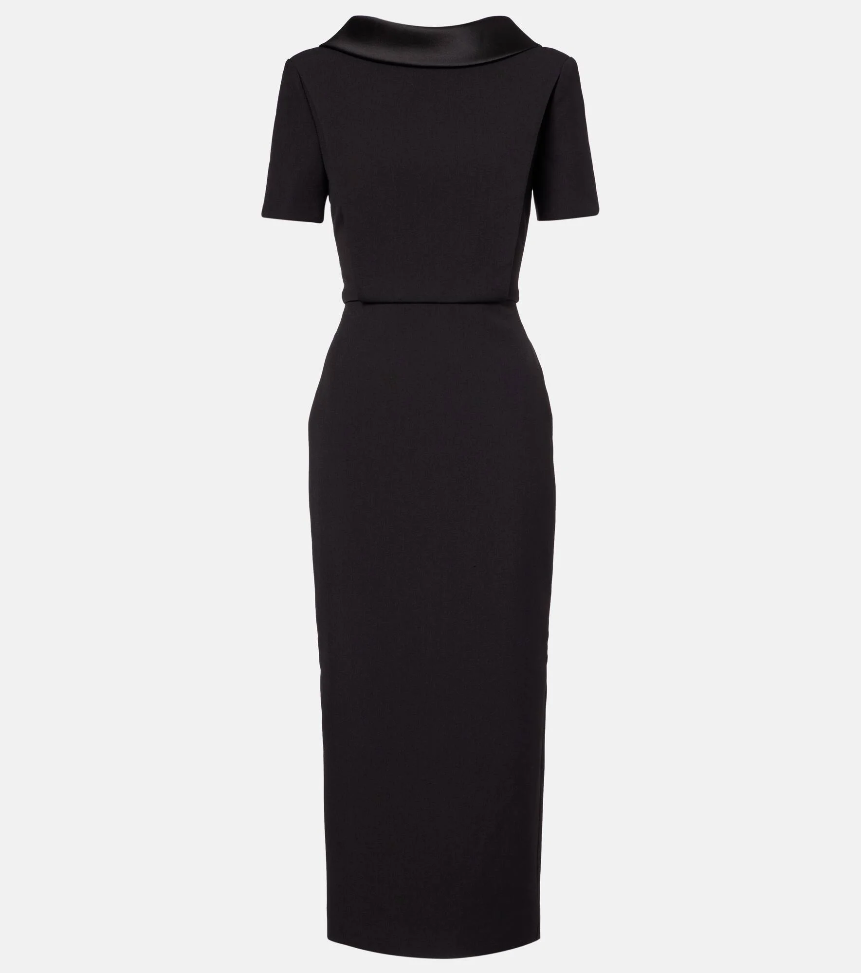 Roland Mouret has made a name for itself through a black tie-ready aesthetic and an expert use of draping. This midi dress is crafted from crepe, and the sheath silhouette is finished with short sleeves and a glossy neckline. Product Details - Material: 86% polyester, 10% viscose, 4% elastane - Care instructions: dry clean - Made in China - Designer color name: Black - Item color: black - Lining: 100% polyester - Closure: concealed zipped back - Short vent - Item number: P01104677 Size & Fit - True to size - Fitted - Non-stretchy fabric - slit length 30cm-12" - The model seen in the picture is 178cm-5'10" and wearing a size UK 6
