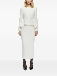 crepe midi skirt Highlights - White - Concealed rear zip fastening - Central rear vent - Full lining Imported Composition Polyester 86%, Viscose 10%, Elastane 4%