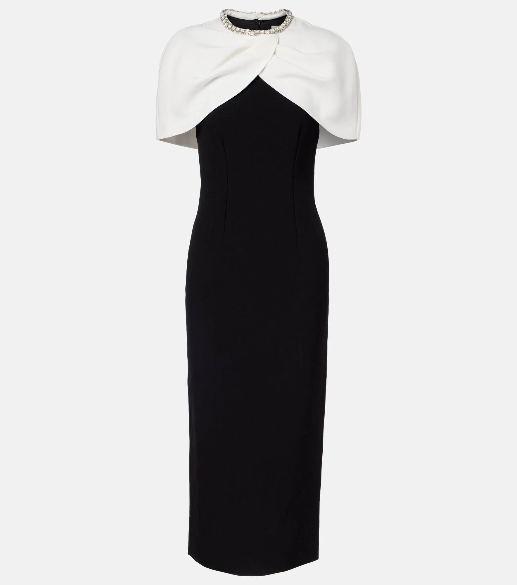 Celebrate life’s special occasions in confidence and grace with Roland Mouret’s iconic designs. This crepe cocktail dress features a cape detail around the shoulders, accented by a crystal-embellished collar. Product Details - Material: 85% polyester, 9% viscose, 6% elastane - Care instructions: dry clean - Made in China - Designer color name: Black - Item color: black, white - Lining: 100% polyester - Closure: concealed zipped back - Long vent - Item number: P01125084 Size & Fit - True to size - Fitted - Non-stretchy fabric - slit length 40cm-15.5" - The model seen in the picture is 178cm-5'10" and wearing a size UK 6