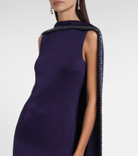 Roland Mouret has made a name for itself through a black tie-ready aesthetic and an expert use of draping. Made from satin crepe, this gown is characterized by its floor-sweeping cape, trimmed with eye-catching crystal embellishments. Product Details - Material: 75% acetate, 25% polyester - Care instructions: dry clean - Made in China - Designer color name: Navy - Item color: blue - Material II: 100% polyester - Lining: 100% polyester - Closure: concealed zipper, zipped back, hook-fastening back - Long vent - Item number: P01080505 Size & Fit - True to size - Close fit at the hips - Fitted - Loose outer layer - Non-stretchy fabric - slit length 69cm-27" - The model seen in the picture is 178cm-5'10" and wearing a size UK 6
