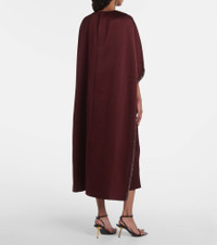 Roland Mouret has made a name for itself through a black tie-ready aesthetic and an expert use of draping. Made from satin crepe, this midi dress is characterized by its elegant cape, trimmed with eye-catching crystal embellishments. Product Details - Material: 75% acetate, 25% polyester - Care instructions: dry clean - Made in China - Designer color name: Mulberry - Item color: burgundy - Material II: 100% polyester - Lining: 100% polyester - Closure: zipped back - Fully lined - Item number: P01080506 Size & Fit - Fits small to size - we recommend trying one size larger - Cinched waist - Loose outer layer - Non-stretchy fabric - slit length 38cm-15" - The model seen in the picture is 178cm-5'10" and wearing a size UK 8