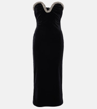 Embellished strapless velvet midi dress