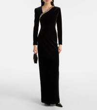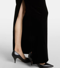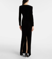A unique understanding of precise tailoring sets Roland Mouret apart, seamlessly blending modern sophistication with an air of ease. Case in point, this refined maxi dress is crafted from plush velvet. Product Details - Material: 92% polyester, 8% elastane - Care instructions: dry clean - Made in China - Designer color name: Black - Item color: black - Material II: 95% polyester, 5% elastane - Lining: 100% polyester - Hardware color: silver - Cuff: zipped - Closure: concealed zipped back - Long vent - Item number: P01104674 Size & Fit - True to size - Fitted - Non-stretchy fabric - slit length 40cm-15.5" - The model seen in the picture is 178cm-5'10" and wearing a size UK 6
