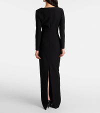 A unique understanding of precise tailoring sets Roland Mouret apart, seamlessly blending modern sophistication with an air of ease. Crafted from luxurious crepe, this gown is defined by a striking contrast floral-applique. Product Details - Material: 84% polyester, 11% viscose, 5% elastane - Care instructions: dry clean - Made in China - Designer color name: Black - Item color: black - Lining: 100% polyester - Closure: concealed zipped back - Long vent - Zipped cuffs - Detachable shoulder pads - Item number: P01104679 Size & Fit - True to size - Shoulder pad inserts - Fitted - Non-stretchy fabric - slit length 70cm-27.5" - The model seen in the picture is 178cm-5'10" and wearing a size UK 6