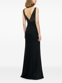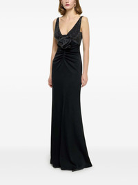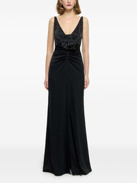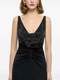 rhinestone-embellished evening gown Highlights - Black - Concealed rear zip fastening - Deep v-neckline - Rhinestone-embellished bodice - Gathered detailing - Fitted silhouette - Elongated skirt Made in United Kingdom Composition Polyester 100%