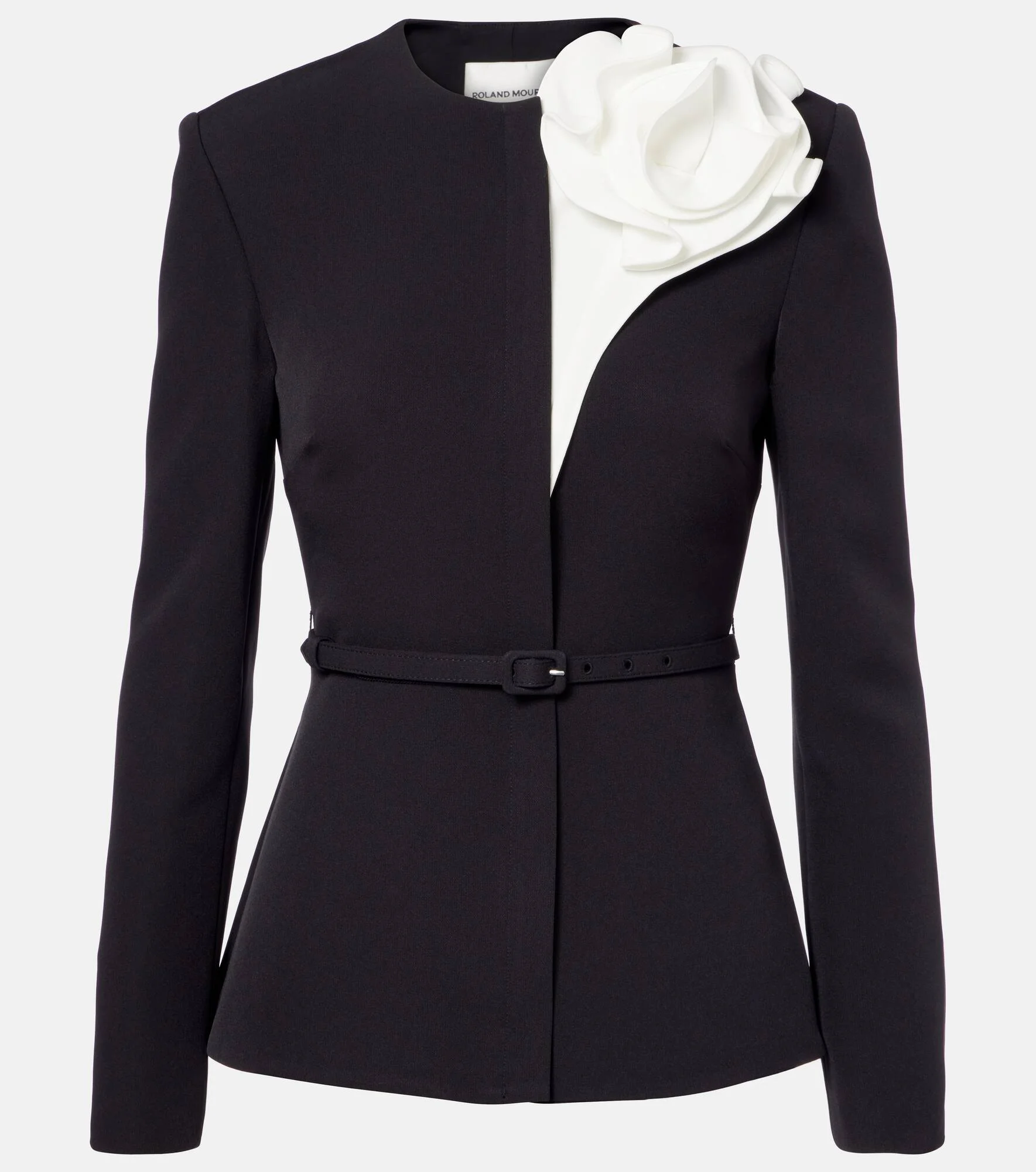 Exude glamour in this blazer from Roland Mouret. This belted style is crafted from crepe and boasts an elegant floral-applique and a peplum. Product Details - Material: 91% polyester, 9% elastane - Care instructions: dry clean - Made in China - Color: black - Designer color name: Black - Lining: 96% viscose, 4% elastane - Closure: concealed zipped front - Detachable belt - Item number: P01166109 Size & Fit - Fits small to size - we recommend trying one size larger - Shoulder pad inserts - Cinched waist - Non-stretchy fabric - Falls to the hip - The model seen in the picture is 178cm-5'10" and wearing a size UK 8