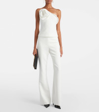 Roland Mouret quickly made a name for itself through a black tie-ready aesthetic and an expert use of draping. These pants have a high-rise waist and flared legs. Product Details - Material: 86% polyester, 10% viscose, 4% elastane - Care instructions: machine wash at 30 degrees - Made in China - Designer color name: White - Item color: white - Lining: 95% viscose, 5% elastane - Closure: zipped side - Pockets: side slit pockets - Item number: P01080438 Size & Fit - True to size - Non-stretchy fabric - Slim-leg with a flared hem - The model seen in the picture is 178cm-5'10" and wearing a size UK 6