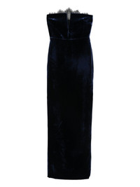 lace-trimmed velvet dress Highlights - Navy blue - Velvet texture - Strapless neckline - Lace trim - Fitted bodice - Straight skirt Imported Composition Outer: Viscose 79%, Silk 19%, Spandex/Elastane 2% Lining: Polyester 100% SIZE & FIT Model measurements Height 5 ft 10 in(1.78 m) Bust/Chest 31.49 in(80 cm) Hips 37 in(94 cm) Waist 23.62 in(60 cm)